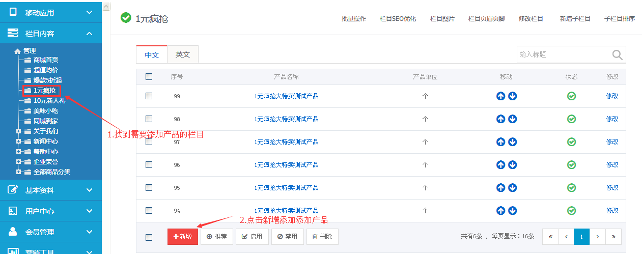 第四步:点击右上方“新增”,就可以添加新的产品。