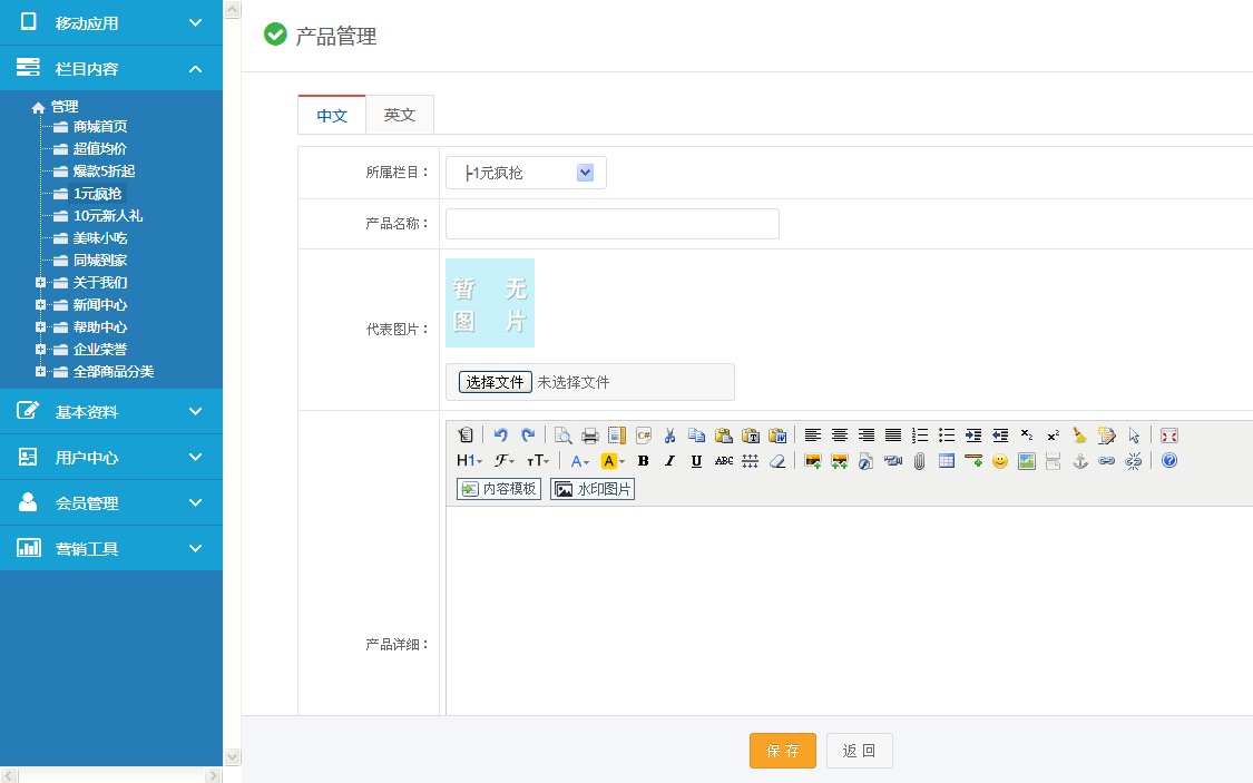 多图 :即可以上传多张图片并展示多张图片,但是只有在网站里使用了多图魔方才可以使用这块地方;