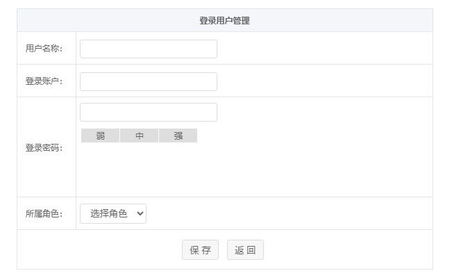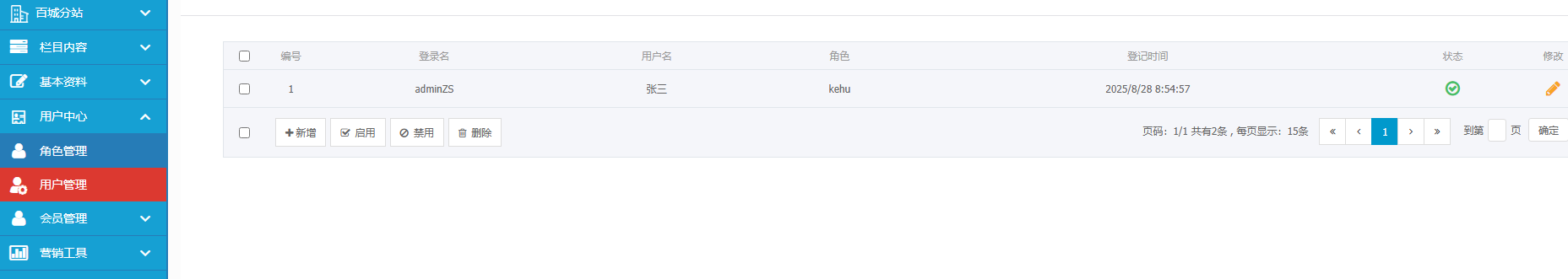 | 所属角色说明:分为不同级别管理权限的角色,可以在角色管理里添加角色 |