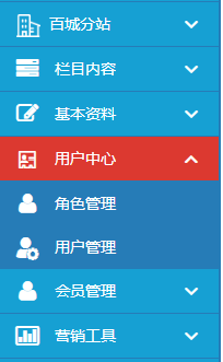 成功登陆网站后台之后,在左侧后台管理菜单中点击“用户中心”:(如图2所示)