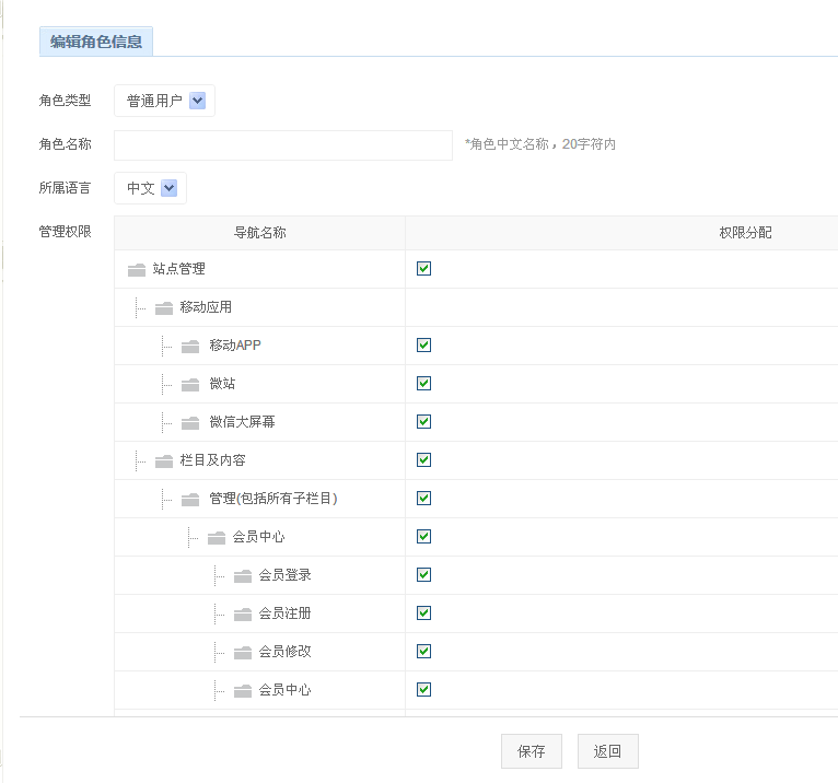 | 角色管理权限说明:可以分配不同管理权限的角色。 |