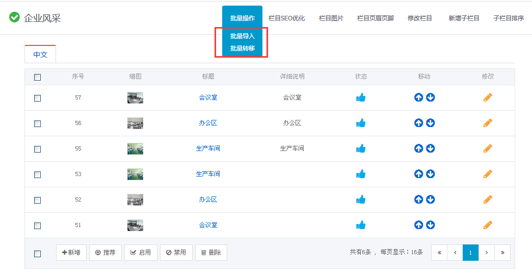 转移栏目:可以批量在图片版块之间进行信息转移。转移方法如下。