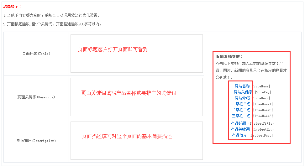 关键字/介绍:起到优化页面的作用,可根据优化不同自行添加。